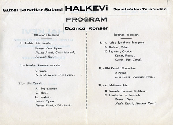 Güzel Sanatlar Şubesi Halkevi Sanatkârları Tarafından düzenlenen 3. Konser’in program broşürü